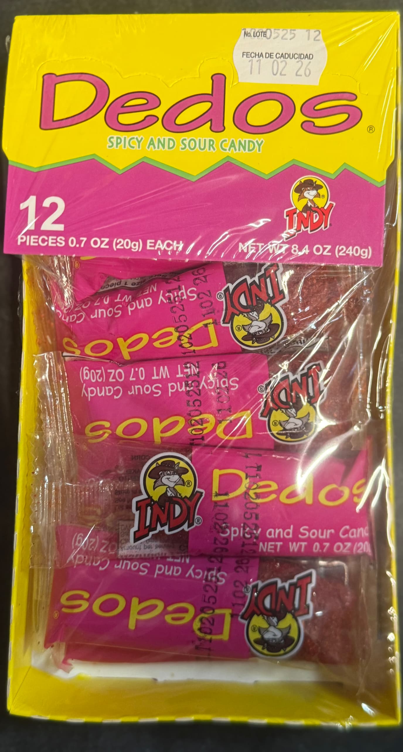 Indulge in the fiery and tangy taste of Indy Dedos Spicy and Sour Chili Candy! This pack of 12 pieces of authentic Mexican candy Dulces Mexicanos is perfect to satisfy your spicy cravings with a sour twist.