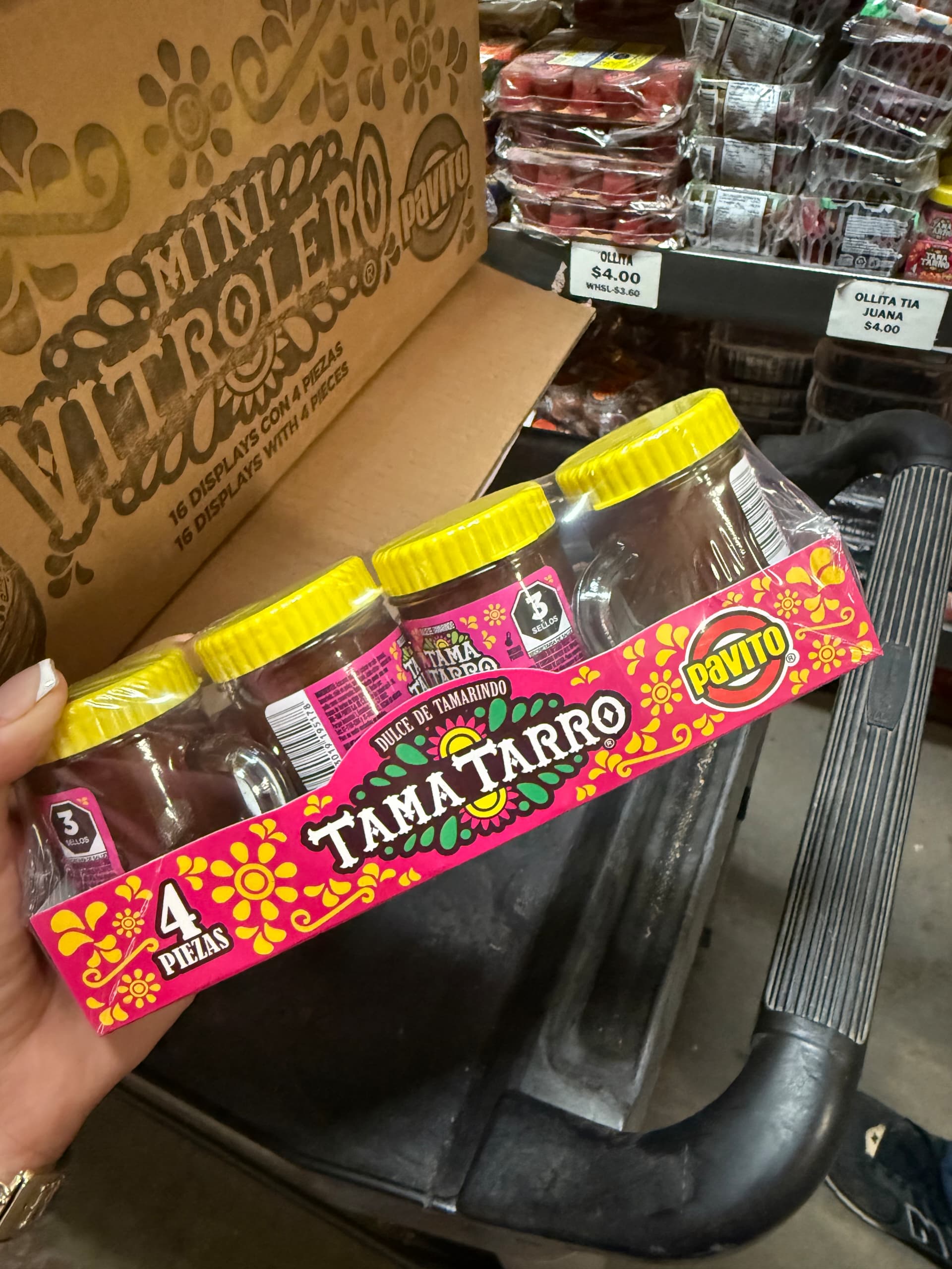 Pavito Tama Tarro is a Mexican tamarind candy, known for its bold, sweet, and spicy flavor profile. It features a chewy, toy-barrel shaped candy made with tamarind pulp, sugar, and chili. The candy is characterized by its sweet and sour tamarind taste with a spicy kick from the chili. Some variations also include a filling with similar flavor profiles. The playful packaging, often resembling toy barrels, makes it popular for kids and gifting